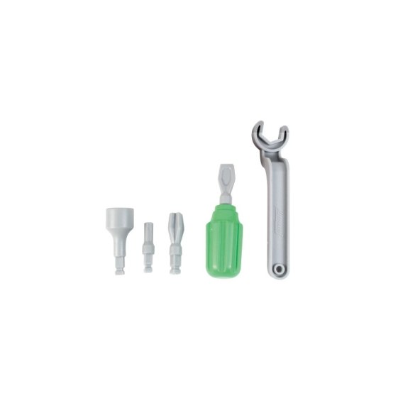 - - W zestawie ręcznych narzędzi do ścianki Naukowo-Kreatywnej Masterkidz, znajduje się śrubokręt z 4 wymiennymi końcówkami, oraz klucz.