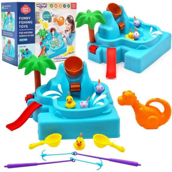 Stolik Wodny 2w1 Gra Łowienie Rybek od renomowanej marki WOOPIE to idealny produkt do niekończącej się zabawy. Piękne, kolorowe elementy w postaci rybek i kaczuszek z pewnością przyciągną uwagę Twojego dziecka. Łowienie rybek za pomocą wędki poprawi zdolności zręcznościowe Twojej pociechy. W zestawie znajduje się 6 elementów: staw, wędka, łyżka do wody, kaczuszka, rybka i konewka. Stolik ma wbudowany wodospad, młynek wodny i zjeżdżalnię. Wędka obraca się o 360 stopni, więc można ją dowolnie regulować i ustawiać pod dowolnym kątem.