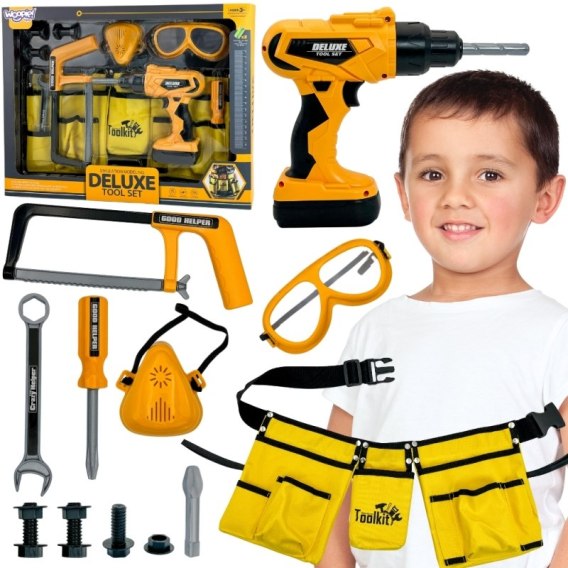 WOOPIE Zestaw Narzędzi Małego Majsterkowicza Gogle Wkrętarka Pas Na Narzędzia 16el.